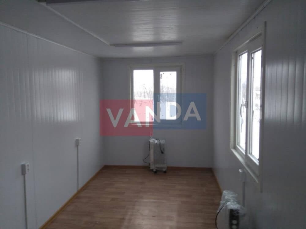 Контейнер состоит из металлического сварного основания. Стены изготовлены из сэндвич-панелей с прокладкой утеплителя. Крыша покрыта крашенным холоднокатаным металлом 1,2 мм. Помещение обустроено пароизоляцией при помощи технической пленки, которая проложена на полу и потолке. Внутренняя облицовка потолка выполнена из ПВХ-панелей, пол – из шпунтованной доски. Вход в помещение оборудован запирающейся металлической дверью.