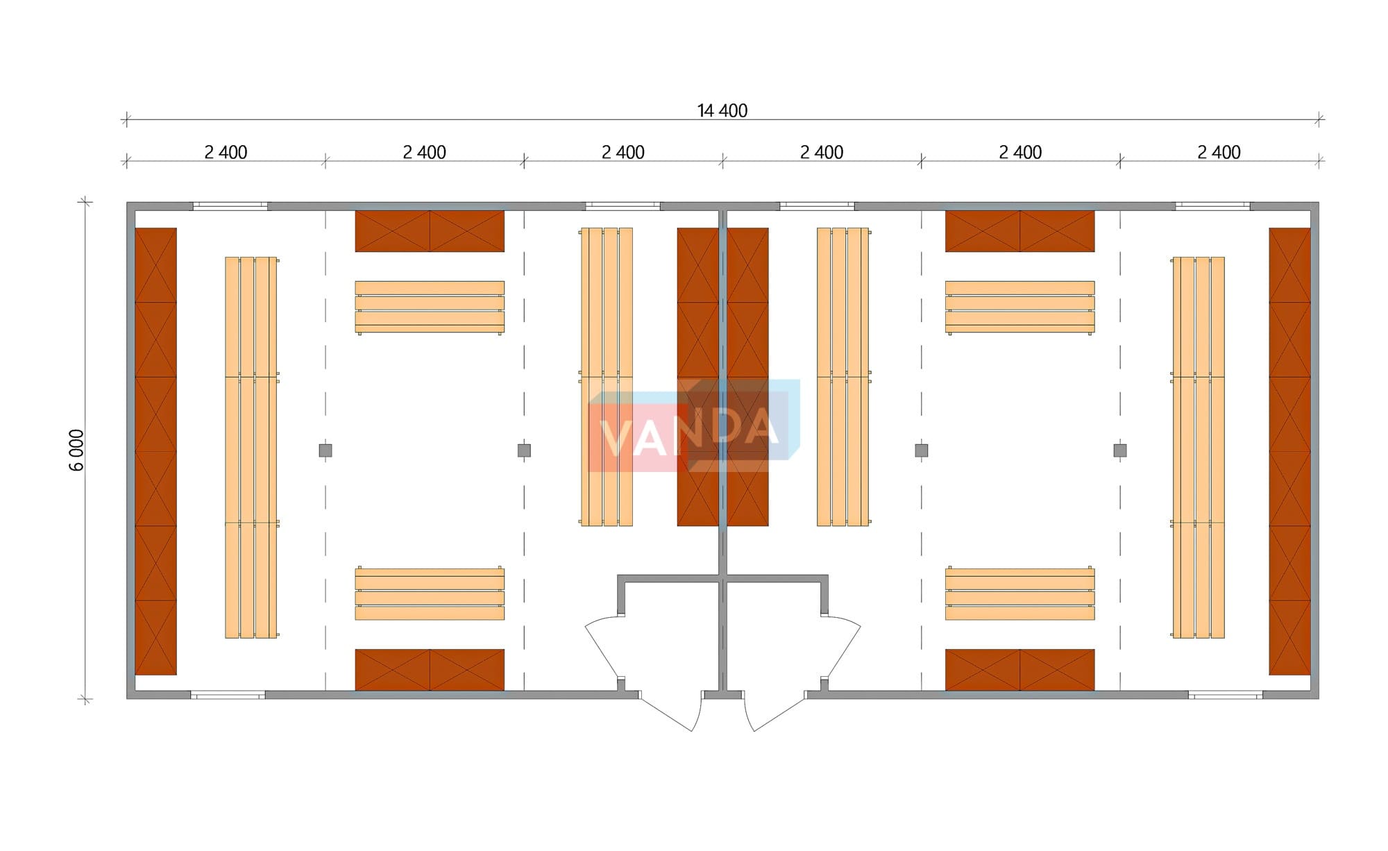 Проект модульной раздевалки 6.0х14,4